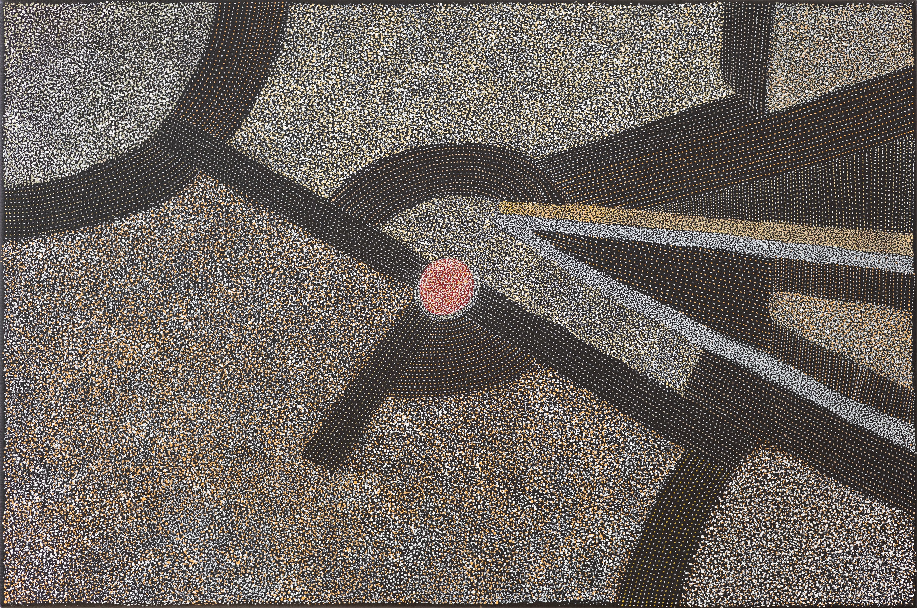Arwengerrp tracks. Going around hunting for bush tomato, bush grass, everything. Looking around all place. Walking and looking around now and always. Like in old times. Our story is Bush Turkey.